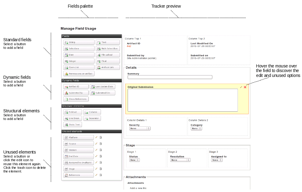Please note that you won’t be able to remove a field if this field is used in tracker semantic, or in tracker workflow.